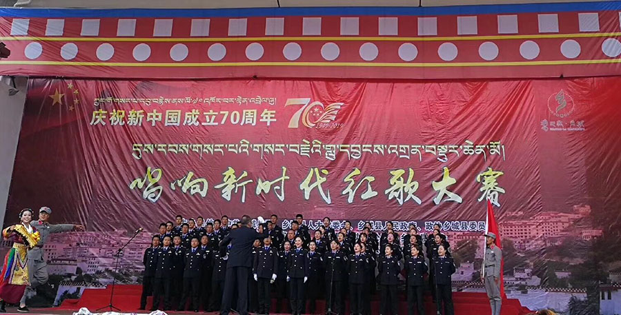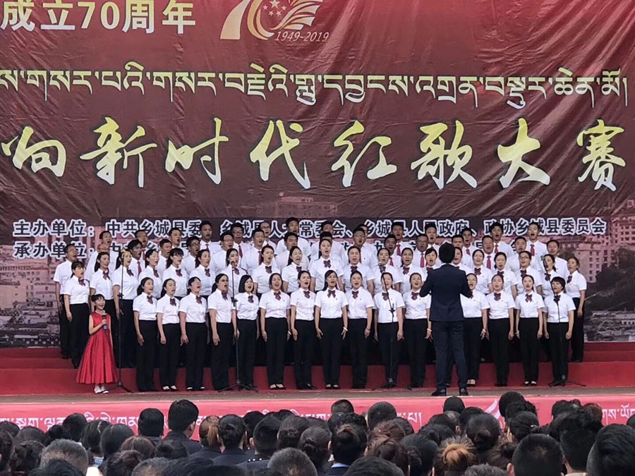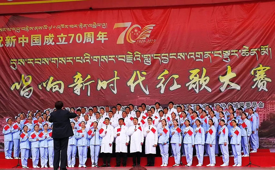 在举国欢乐的日子很荣幸“乡城人民医院”能穿上我们“成都晋沙汇川服装有限公司”定做的服饰在舞台上歌颂时代,歌唱祖国。也衷心祝愿祖国更加繁荣昌盛!
